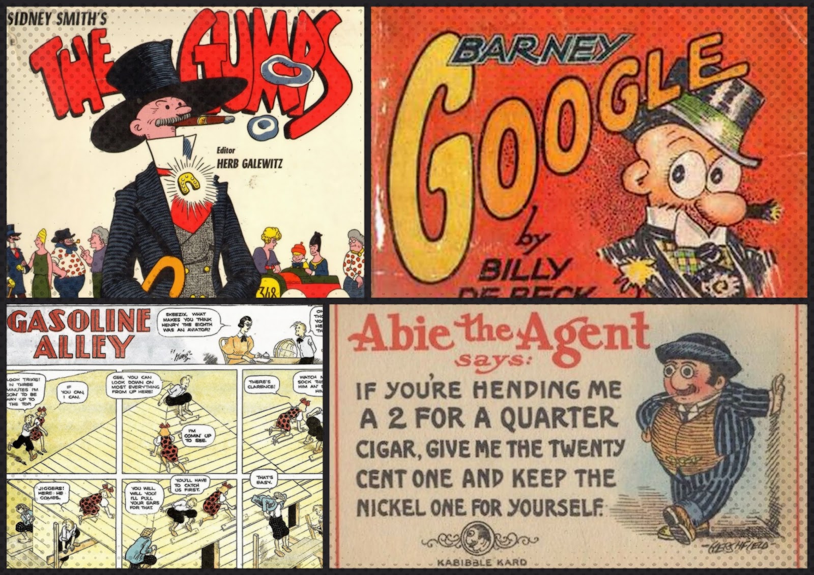 Abie the Agent di Harry Hershfield affronta con allegra serietà le problematiche degli affari e della politica dal punto di vista delle minoranze etniche, in questo caso ebraiche. Uscito nel 1914 venne definito “il primo fumetto adulto d’America” e fu anche il primo in cui i personaggi quando pensano lo fanno all’interno di “nuvolette mosse” diverse dalle altre.